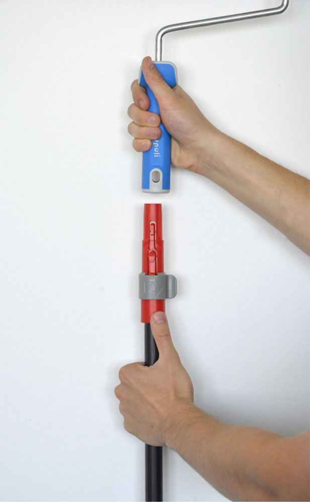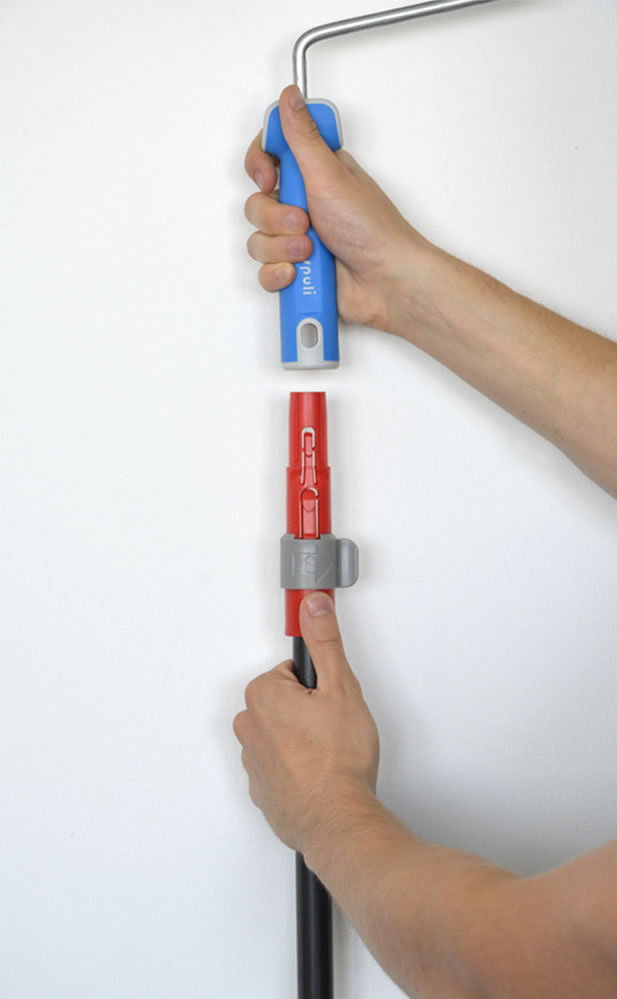 La pertica SYSTEMBLOCK® ha un intelligente sistema di fissaggio per agganciare saldamente il rullo o altri attrezzi alla pertica. Basta un solo Click per montare l’attrezzo e un semplice movimento per staccarlo.