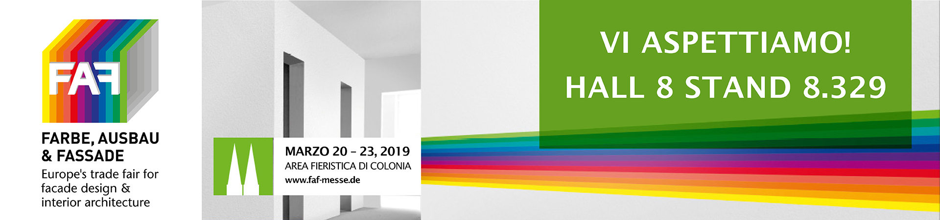 FARBE, AUSBAU & FASSADE è la fiera commerciale europea specializzata nell’architettura e progettazione di interni che si occupa di pittura, sviluppo, facciate, mantenimento delle strutture, progettazione, intonacatura e asciugatura della muratura La fiera commerciale è organizzata da GHM (Gesellschaft für Handweksmessen mbH) dal 1972. Quest’anno la fiera commerciale si terrà al Fairground di Colonia.